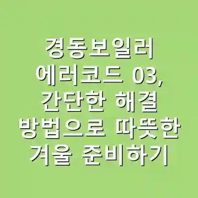 경동보일러 에러코드 03은 난방수 부족 또는 배관 순환 불량으로 발생합니다. 적절한 난방수 보충과 순환 시스템 점검을 통해 문제를 해결할 수 있습니다. 정기적인 점검을 통해 예방하는 것이 중요합니다.