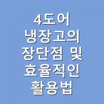 4도어 냉장고는 공간 활용성과 다양한 기능 덕분에 많은 가정에서 선호되고 있습니다. 초기 비용과 유지보수의 필요성을 고려하더라도, 효율적인 식품 저장 및 관리의 이점으로 인해 가치가 높은 제품입니다. 따라서 신중한 선택과 활용법을 통해 장점을 극대화할 수 있습니다.
